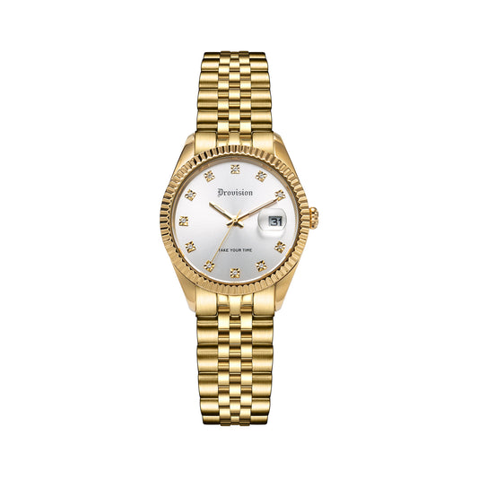 GOLD/WHITE ROUND WATCH RING